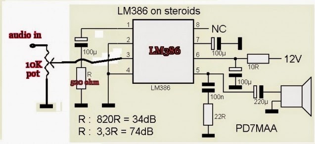This is the buffed up version of the LM386 amplifier circuit- the LM386 on steroids!